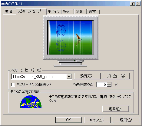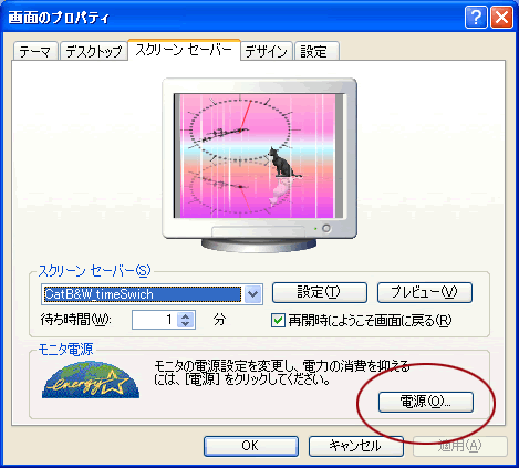 下記はWindowsXPのスクリーンセイバー設定プロパティです。